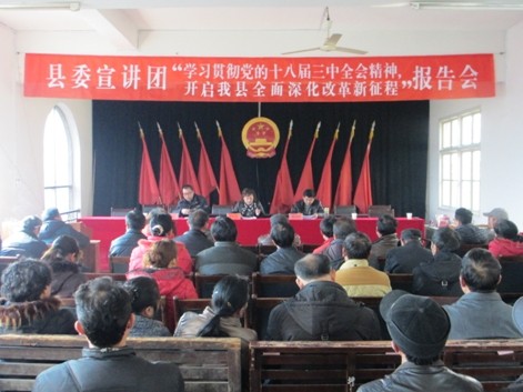1月17日上午,县委十八届三中全会精神宣讲团走进坪村镇带领该镇80余名党员干部,一起深入学习和贯彻落实党的十八届三中全会精神。