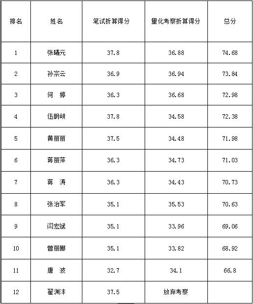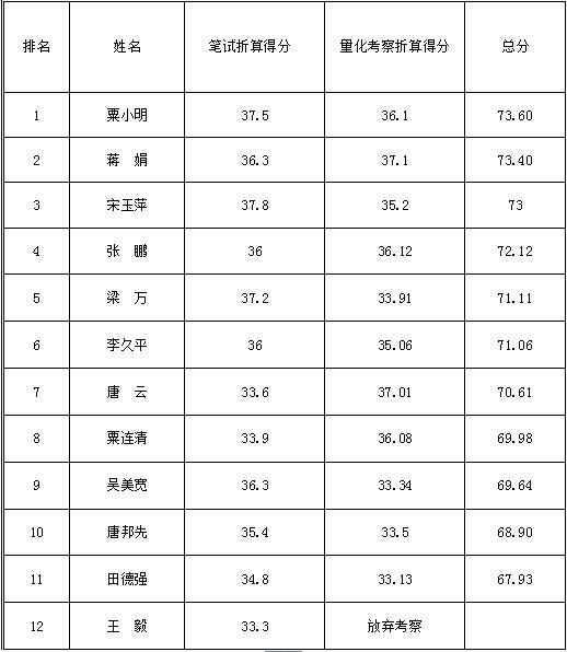 会同县“三类人员”综合得分情况公布 来源: 作者: 发布时间:2016-04-19 浏览次数:1447 次 【字体:小 大】 会同县“三类人员”综合得分情况公布(优秀村干部) 会同县“三类人员”综合得分情况公布(大学生村官) 会同县“三类人员”综合得分情况公布(乡镇事业站所) 【打印正文】 上一篇:会同县从“三类人员”中选配乡镇领导班子成员笔试排名成绩 [ 2016-03-25 ] 下一篇:会同县择优选拔“三类人员”进乡镇领导班子拟提名人选公示 [ 2016-04-22 ]
